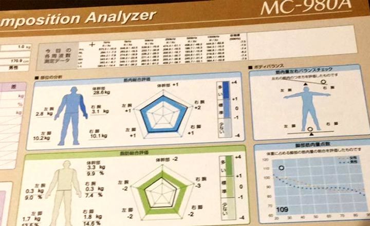 We will measure not only your weight or body fat percentage, but also your posture, movement, muscle mass and your balance in detail. The analysis report will be handed to you on the spot!