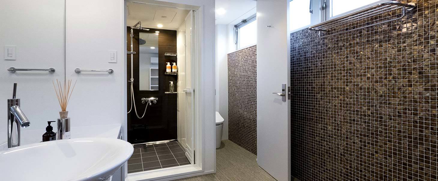 shampoo, conditioner, shower gel, lotion, hairdryer,