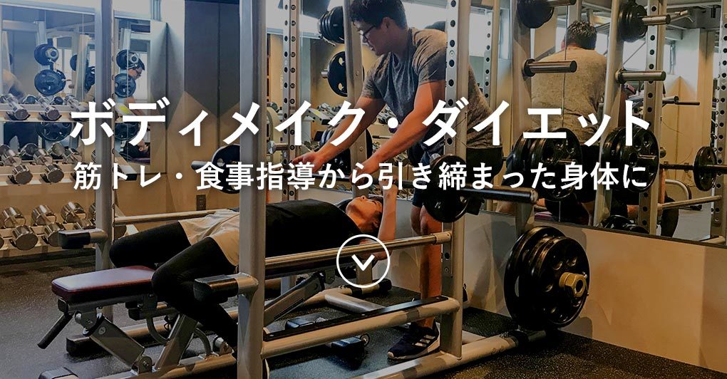 人により異なる体格・生活習慣や動きのクセをチェックして、身体の動かし方やトレーニング内容の微調整を行い、脂肪を燃焼させて必要な筋肉を解剖学に基づいたトレーニングプログラムのもと筋肉をつけていくことで基礎代謝量が上がり太りづらい身体にします。必要がある場合、栄養学に基づいた食事指導を行いご自身の理想とする体型を実現します。